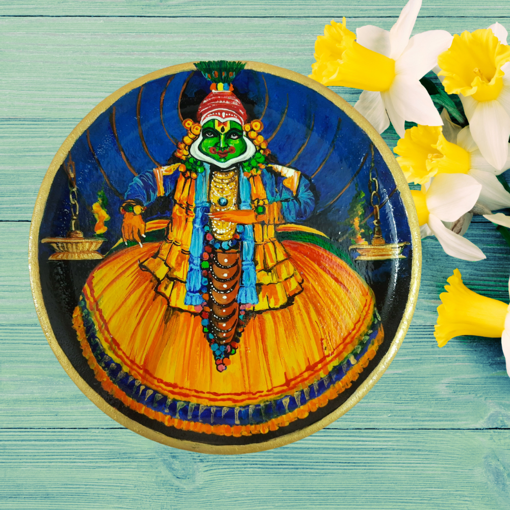 Bring home a piece of Indian heritage with this hand-painted Kathakali wall plate. Inspired by the vibrant dance drama of Kerala, this decorative plate adds culture, color, and elegance to your walls. Perfect for living rooms, dining areas, or as a thoughtful gift, it’s more than decor — it’s art with a soul.